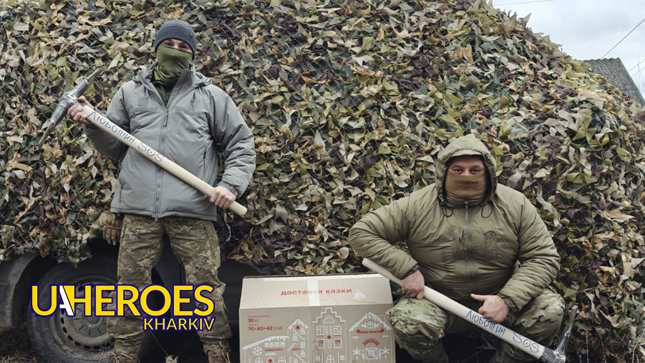 - Нашим друзям з ГО “Ангел-К”, Олександру Кобзеву та Вадиму, за маскувальну антидронову сітку, в’язані шкарпетки, ліки.